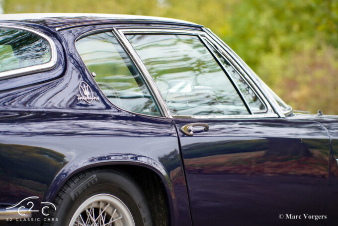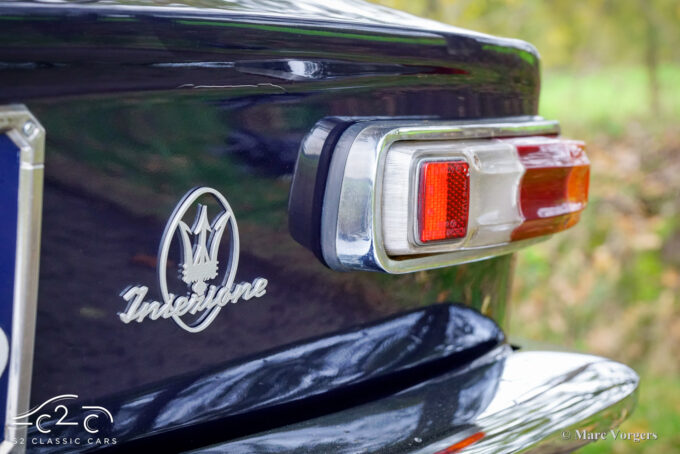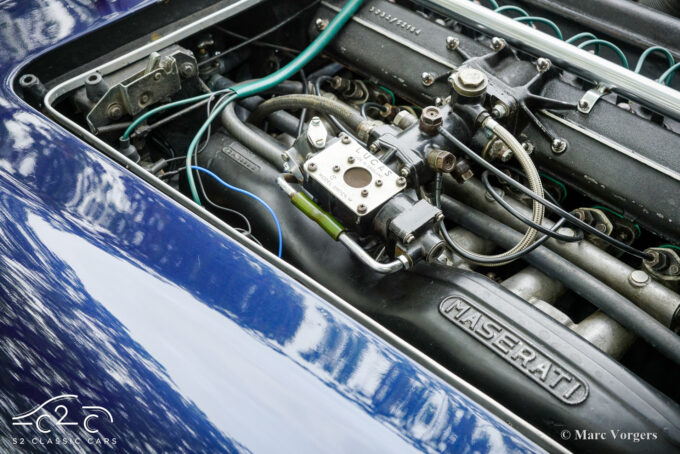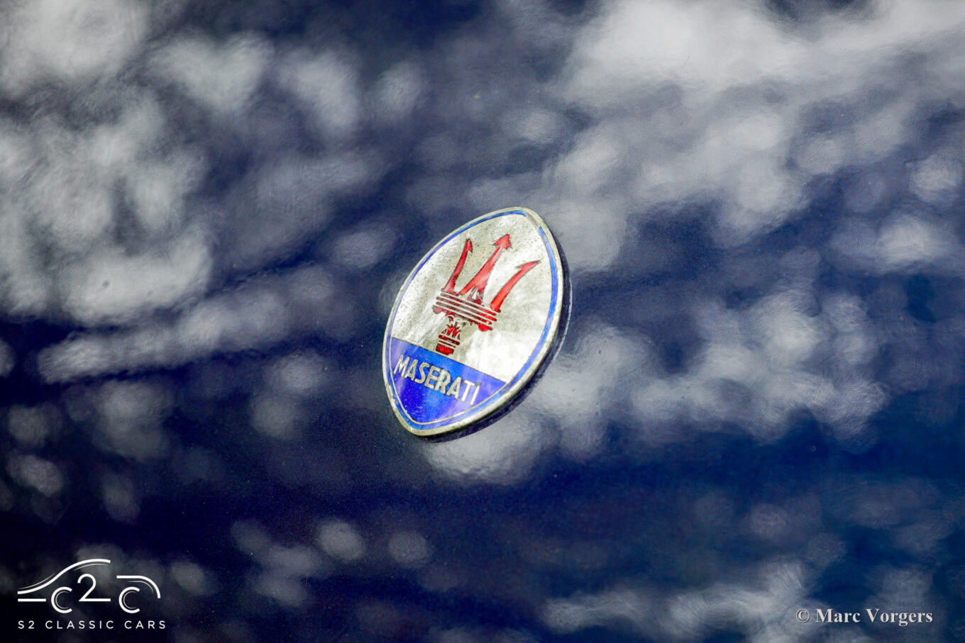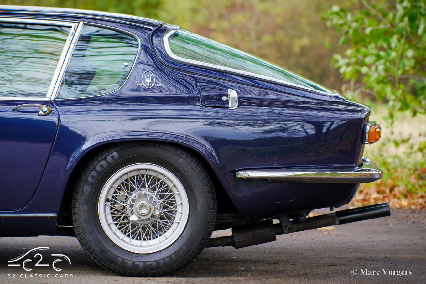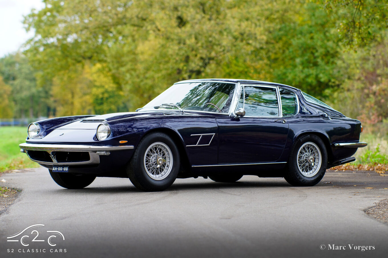 Carrosseriekleur donkerblauw metallic (Blu Pervinca 106AR357) gecombineerd met een blauw lederen interieur afgewerkt met rood tapijt. Deze schitterende Maserati werd gebouwd op 9 mei 1966 en aansluitend geleverd aan de eerste eigenaar in Verona, Italië. Vanuit Italië vond de auto een nieuw thuis in Duitsland bij de heer Hans Haemer, die de auto vervolgens in 1982 verkocht aan de vader van de huidige eigenaar. De familie bezit en koestert deze bijzondere auto al 43 jaar!