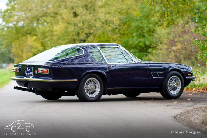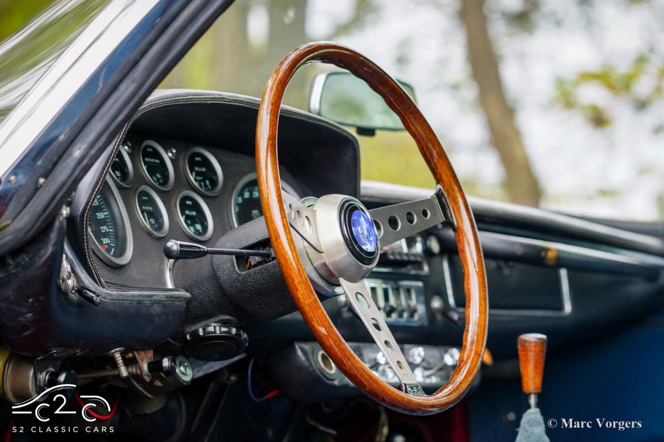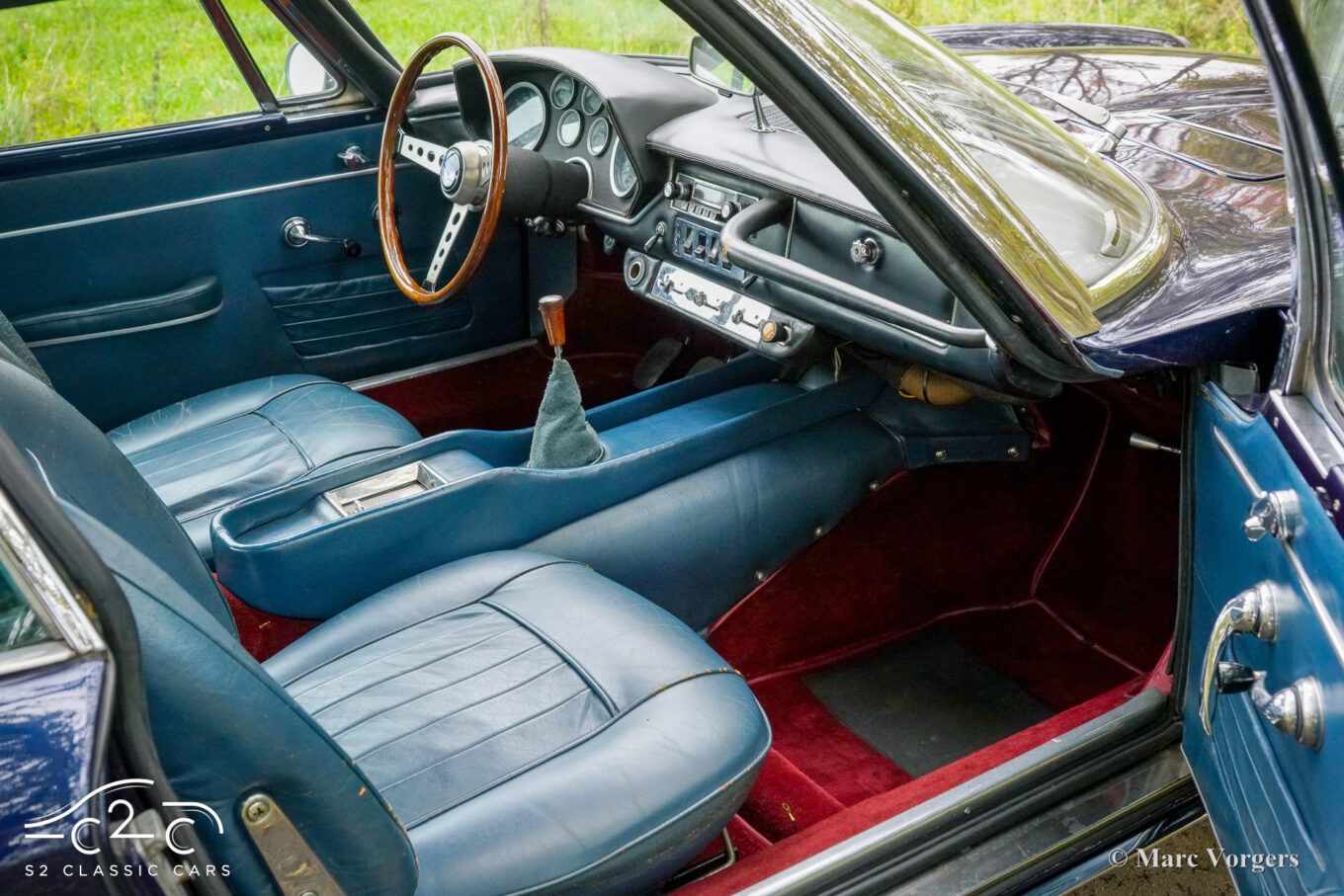 Maserati Mistral Coupé 4 liter injectie, bouwjaar 1966. Chassisnummer AM109/A1/724. Dit is een ‘matching numbers’ auto waarvan met de motor, versnellingsbak en achteras origineel bij het chassis en de carrosserie horen.