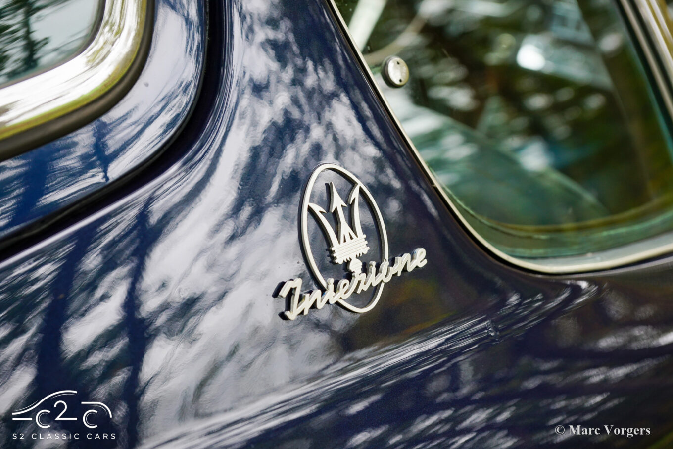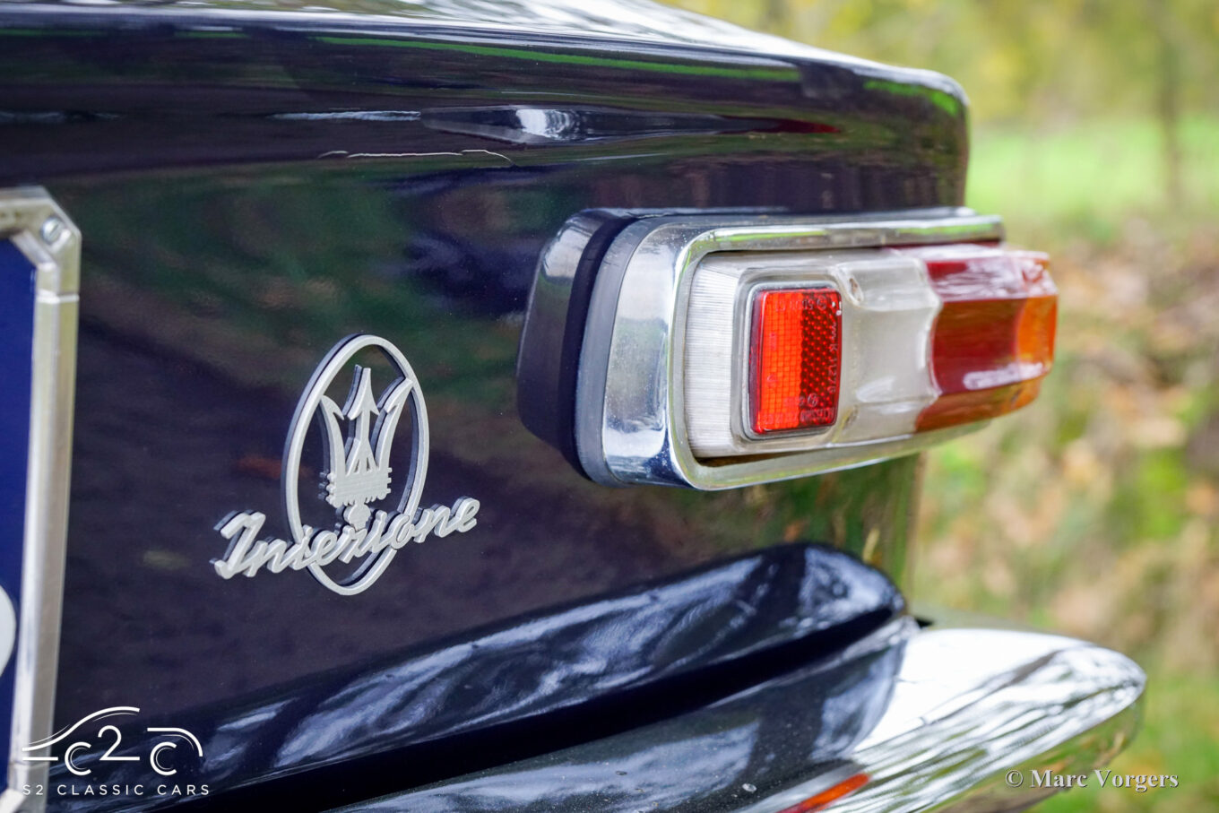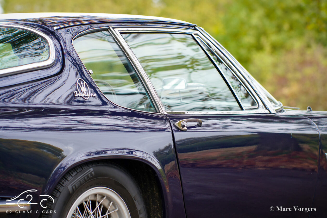 Die Karosseriefarbe ist Dunkelblaumetallic (Blu Pervinca 106AR357), kombiniert mit einer blauen Lederausstattung und rotem Teppich. Dieser wundervolle Maserati wurde am 9. Mai 1966 gebaut und anschließend an seinen Erstbesitzer in Verona, Italien, ausgeliefert. Von Italien gelangte der Wagen nach Deutschland zu Herrn Hans Haemer, der ihn 1982 an den Vater des heutigen Besitzers verkaufte. Die Familie besitzt und pflegt dieses besondere Auto nun seit 43 Jahren!