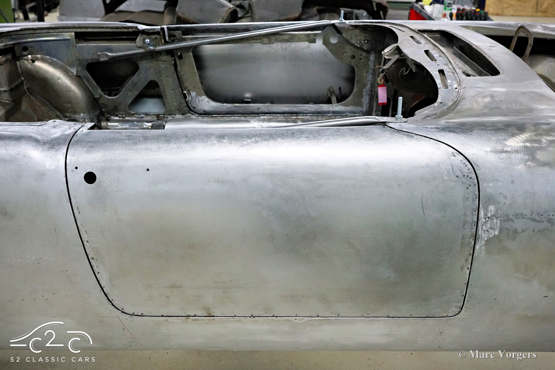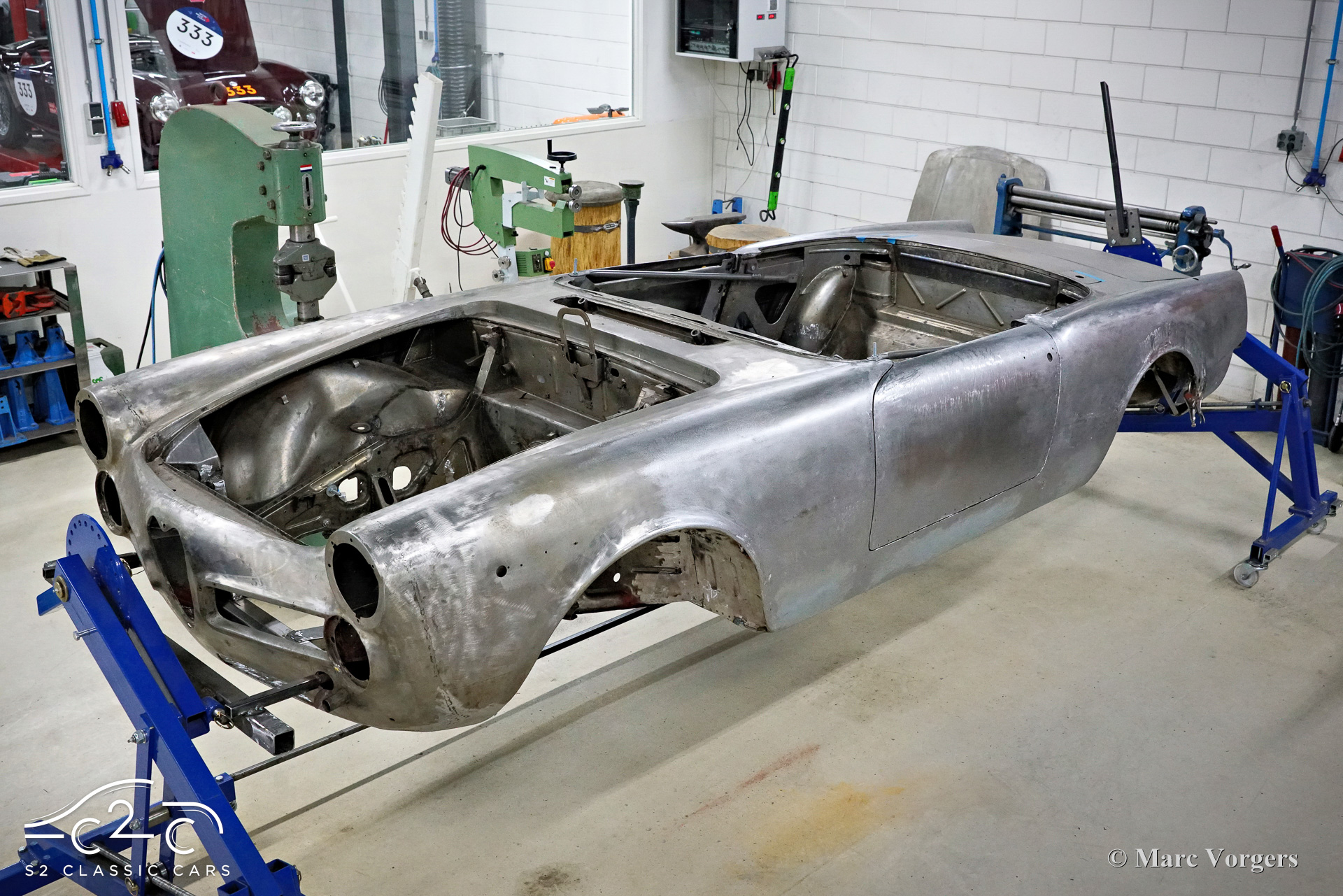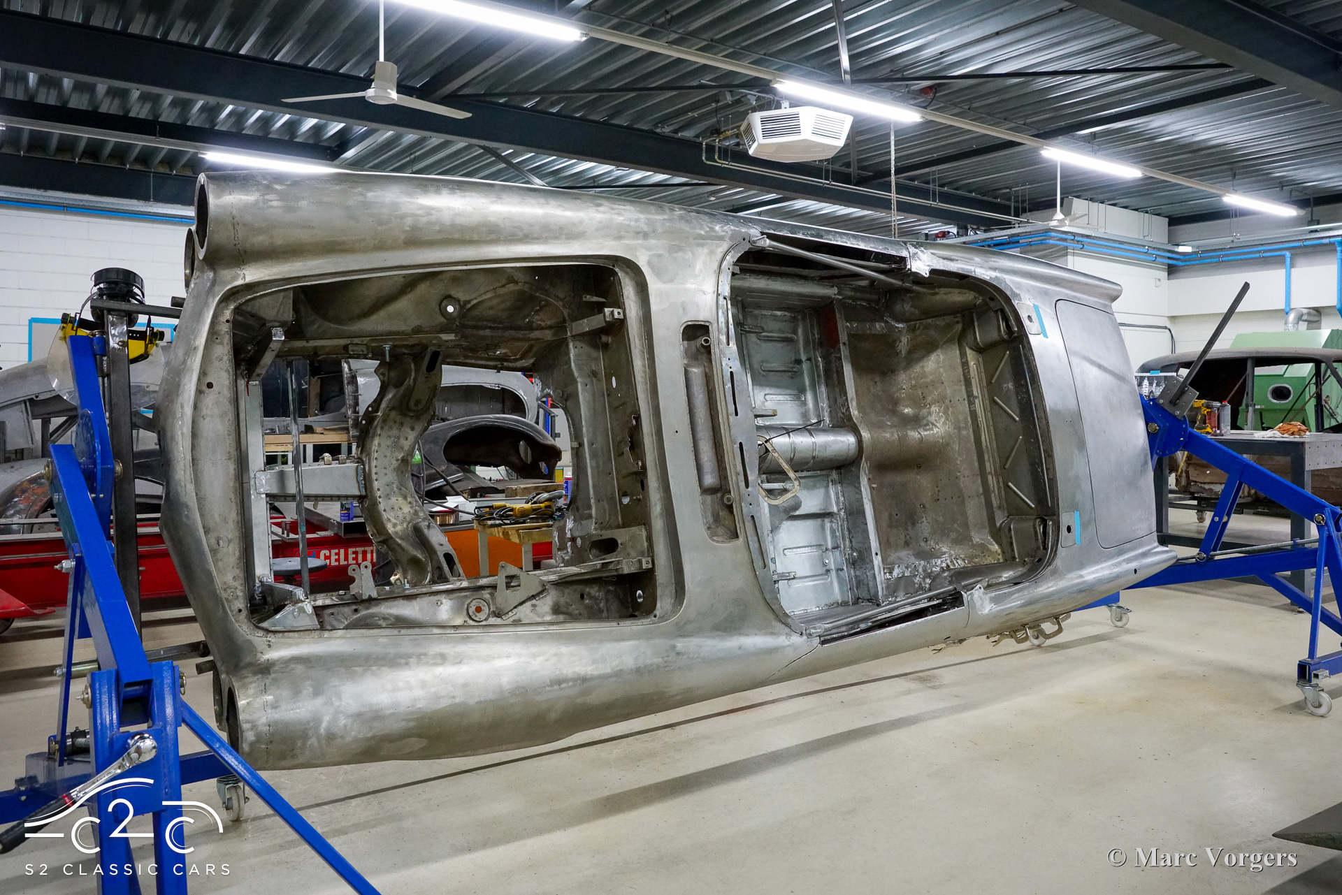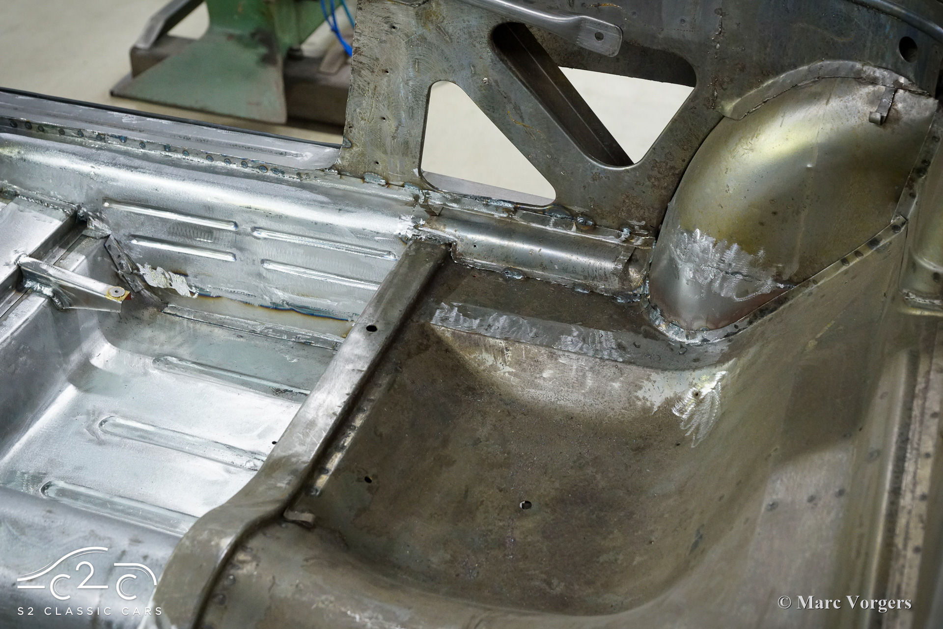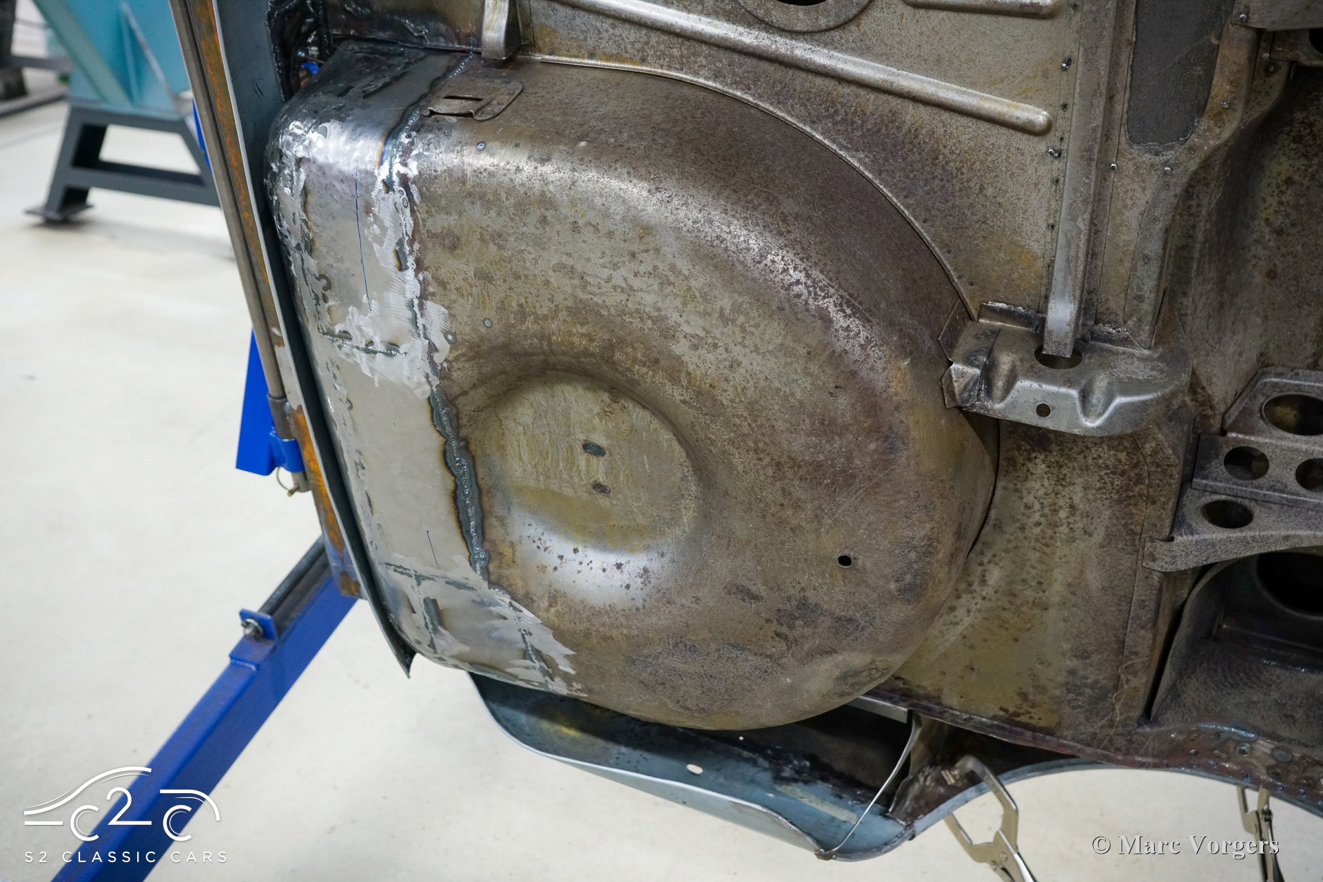 Although this car has not suffered any damage, a recent inspection revealed that the body required significant attention to bring it to peak condition. Therefore, in 2023, a thorough restoration of the body began, with the car being disassembled down to the chassis. The body is being carefully restored to original factory specifications, including updates such as replacing the floor and sills. These tasks are facilitated by our own sheet metal and mechanical workshop, specializing in classic car restoration and coachbuilding for vintage cars, with experienced professionals.