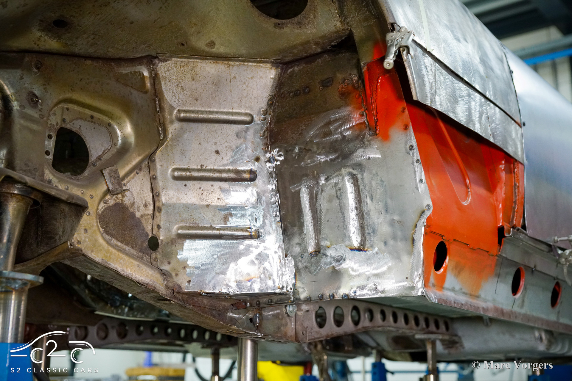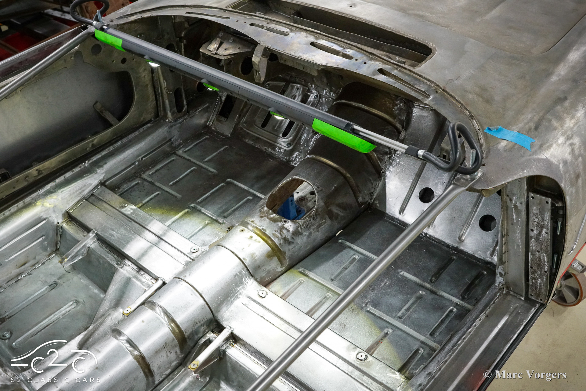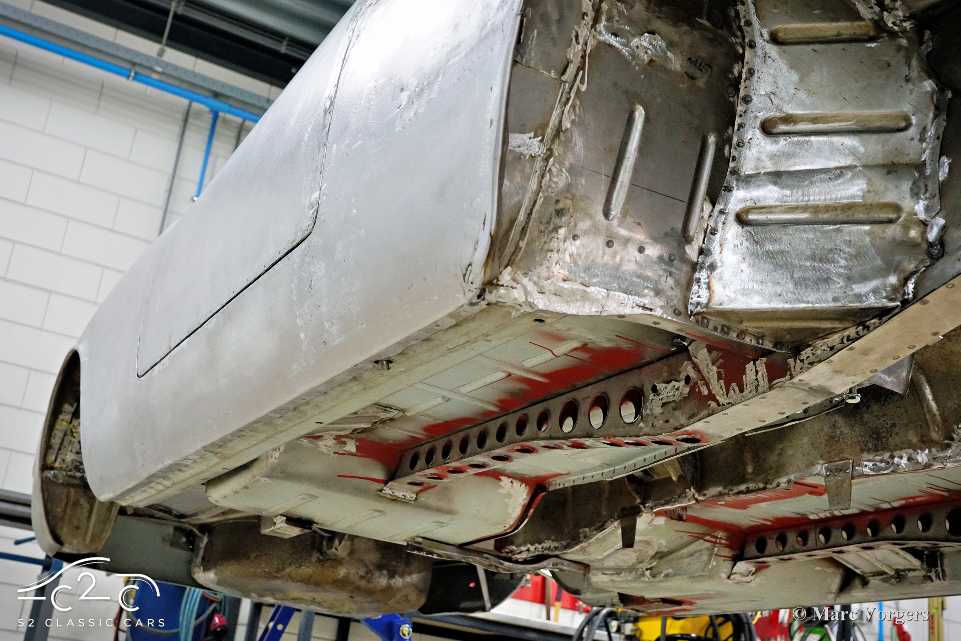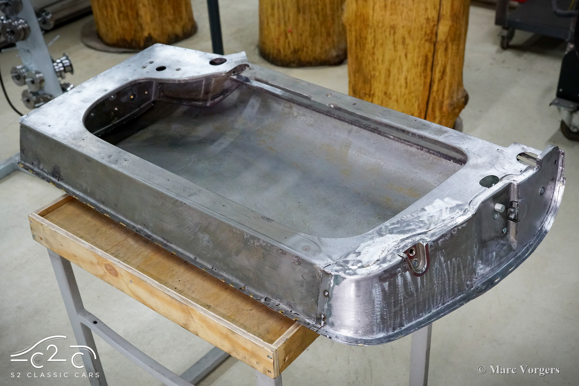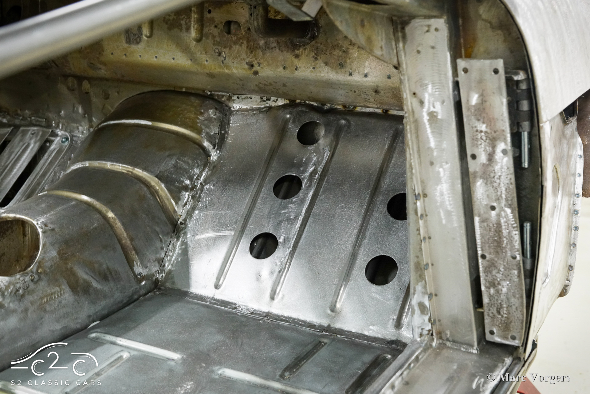 Although this car has not suffered any damage, a recent inspection revealed that the body required significant attention to bring it to peak condition. Therefore, in 2023, a thorough restoration of the body began, with the car being disassembled down to the chassis. The body is being carefully restored to original factory specifications, including updates such as replacing the floor and sills. These tasks are facilitated by our own sheet metal and mechanical workshop, specializing in classic car restoration and coachbuilding for vintage cars, with experienced professionals.