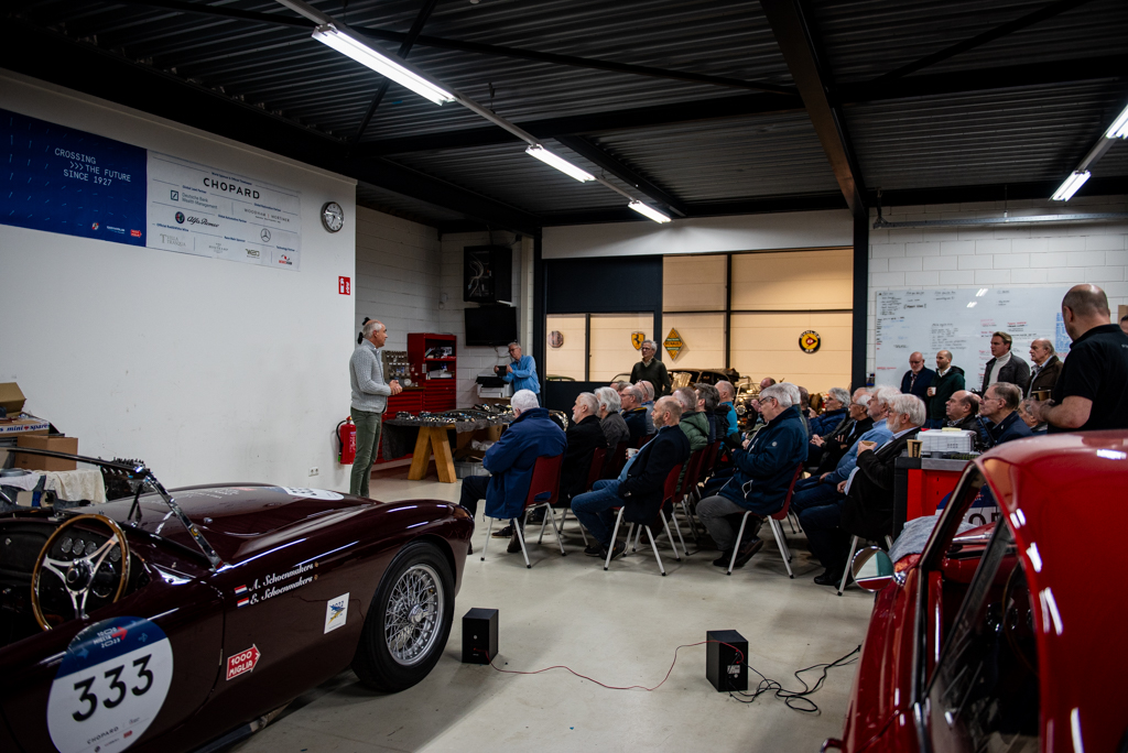 Centraal stond een boeiende presentatie die onze gasten meenam in de wereld van de legendarische 1000 Miglia-rally vanuit het perspectief van ons toegewijde service team. We wilden de leden laten ervaren wat er allemaal komt kijken bij de voorbereidingen op zo’n iconische race. Onze presentatie was doorspekt met multimediale elementen, waaronder exclusieve ‘behind-the-scenes’ foto’s die een uniek inzicht gaven in ons werk.